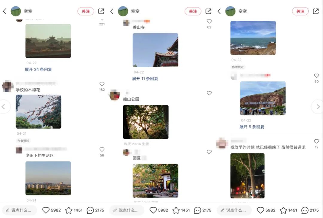 “故宫”“学校的木棉花”“洛阳的白园”“香山寺”“平潭”……评论区里都是网友分享给女孩外公的各地风景照片,祖国的大好河山都在那些照片里。当然,除了照片,还有感人的言语,发帖的女孩收到了很多走心的鼓励和美好的祝福。