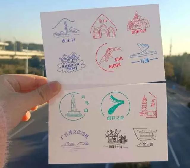 一张纯白色卡纸,上面印着各色精美印章,每一枚印章都有自己的故事,是一个城市形象的缩影。