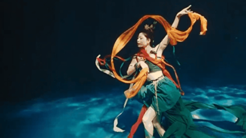 水下中国风舞蹈《祈》,舞者化身“洛神”绝美登场,或拂袖起舞,或拨裙回转,或刚劲有力,或娉婷袅娜,水随舞动,衣袂翩跹。一时间,观者都成了曹植,深陷于洛神之美。