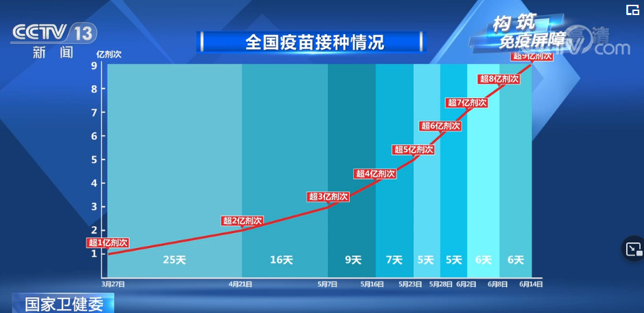 6月19日,超过10亿剂次,用时5天