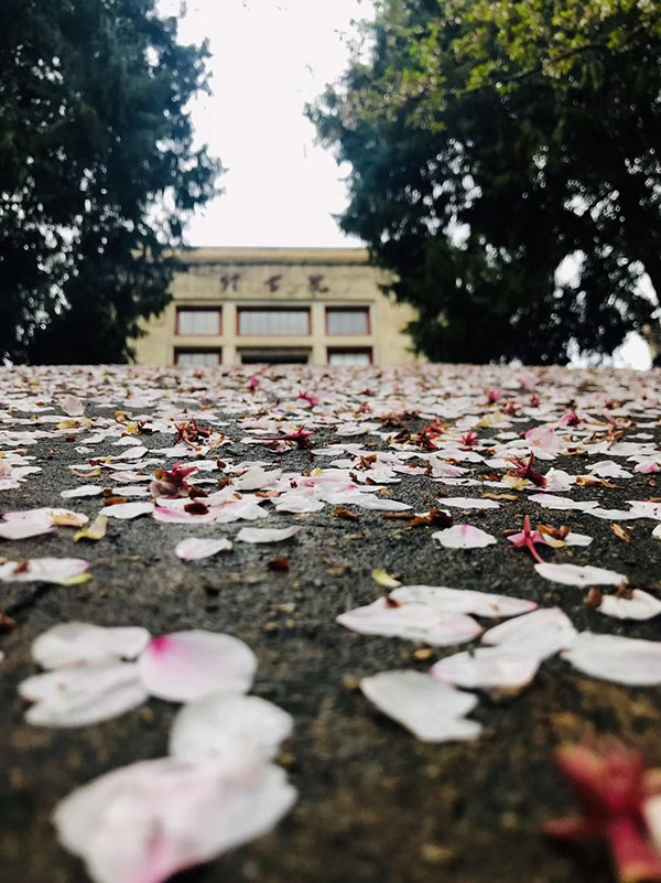 2020年3月,武汉大学校园实行封闭管理,樱花落寞开放。(资料图)