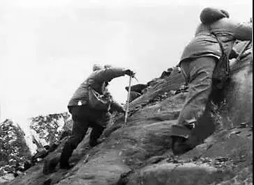 1958年,施雅风(左)与队友考察祁连山冰川时奋力攀登。图片来源:中科院兰州分院