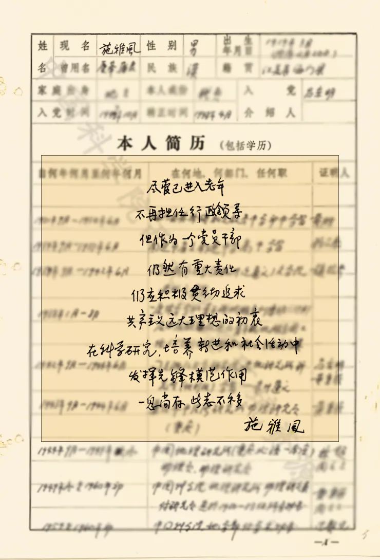 ——(摘自施雅风1985年11月《中国共产党党员登记表》)