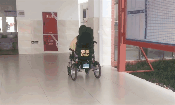 1月4日下午,刚出寝室的陈晨在同学的搀扶下,坐上了电动轮椅。她准备到教室里去一趟,随着手指轻轻一按,电动轮椅就载着她顺着无障碍通道前行。“不知道张彩虹去重庆实习,顺利不?”