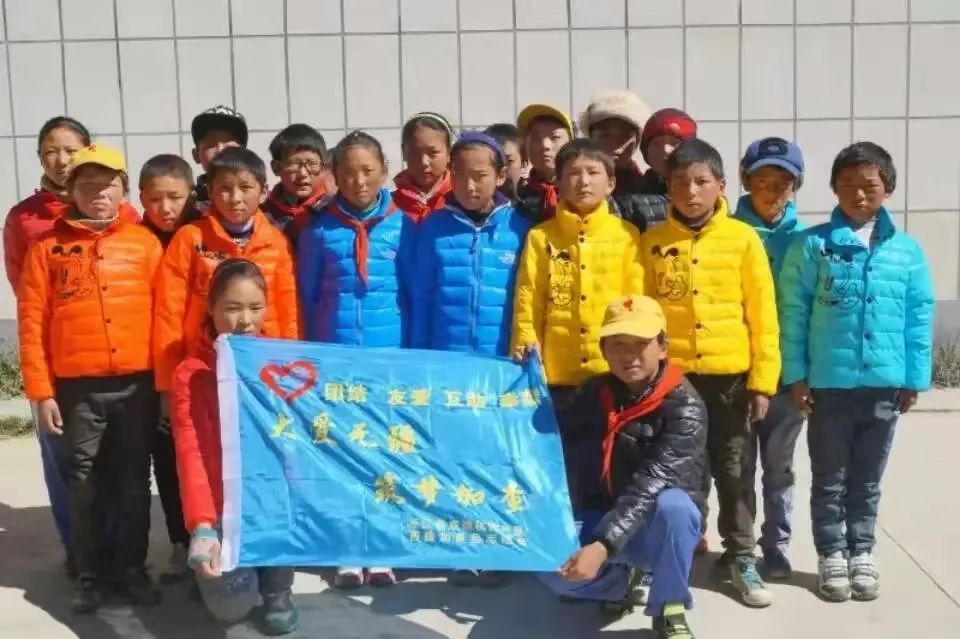 图为山南市加查县坝乡的孩子们穿上新羽绒服合影