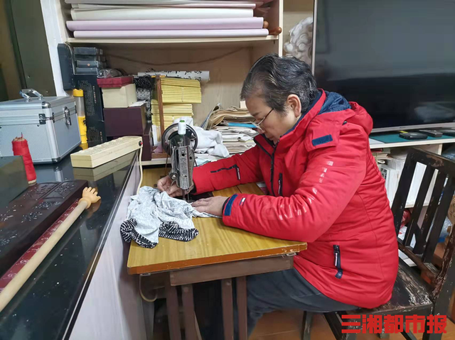 自家一楼的小门店,一台蝴蝶牌缝纫机,一副老花眼镜,这是高燕重要的合作伙伴。10年来,她在长沙市岳麓区湖东社区,为数百人免费缝补衣物,一针一线皆纯手工完成。