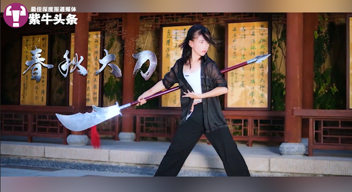 2021年9月,她在网上发布视频《戴上耳机别眨眼,带你领略中华武术的魅力!》。短短4分钟时间里,她使用了剑、长枪、峨眉刺、双钩、春秋大刀、凤翅镏金镋、狼牙棒等26种冷兵器。