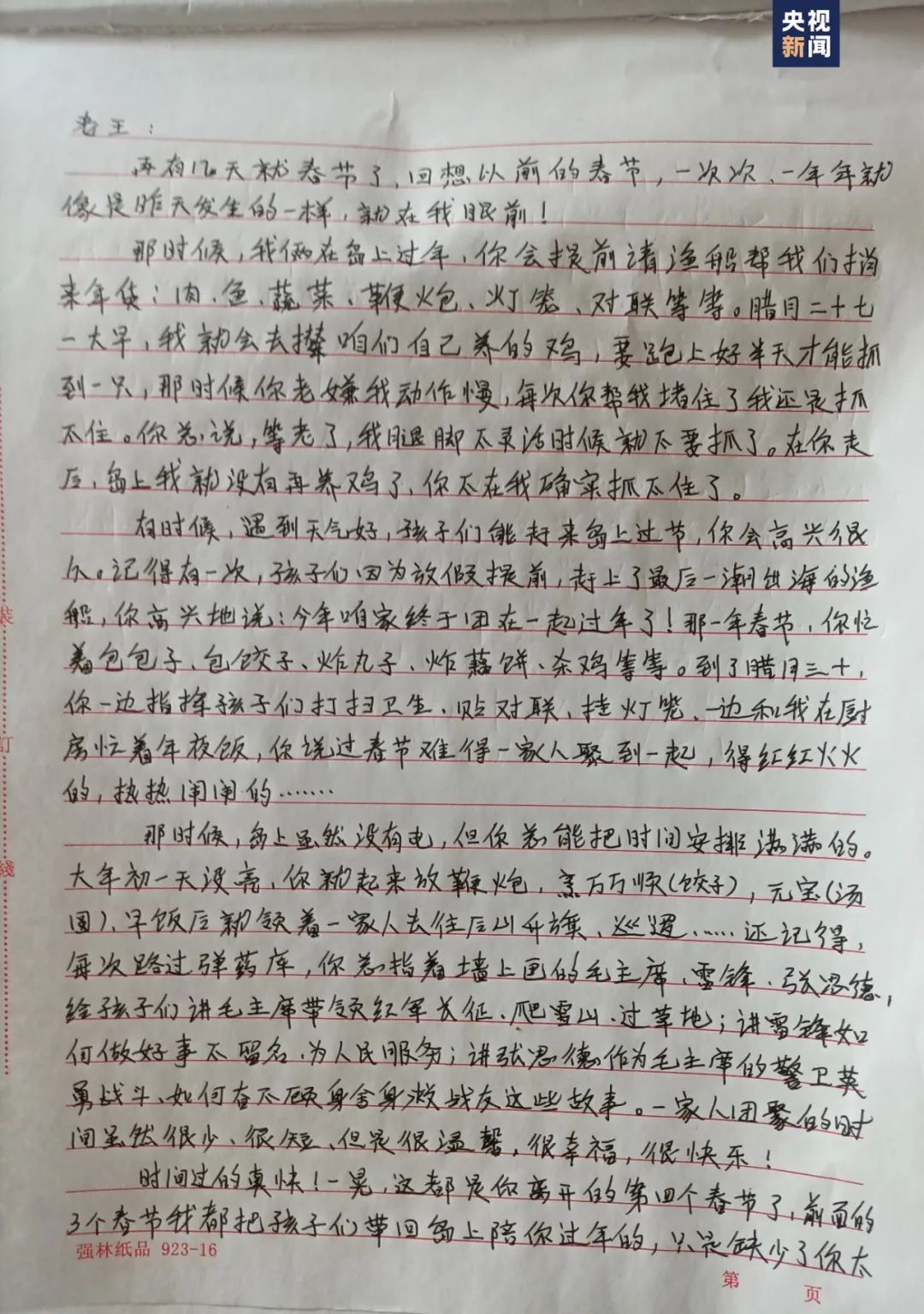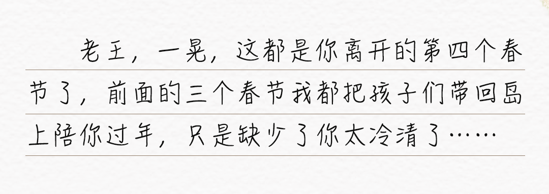 如今,再回想起岛上的日子,王仕花总能记起那些平淡而真实的幸福。今年春节前夕,王仕花写给老王的信(全文)。