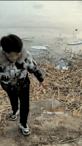 只有17岁的付英泽迅速跳进刺骨的湖里,