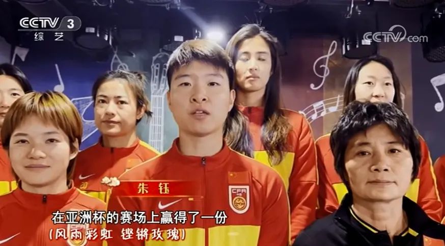 2月15日晚央视播出的元宵晚会上,正在苏州酒店隔离的,中国国家女足足球队全体球员及主教练水庆霞一同出镜,与现场两位女歌手尚雯婕和李斯丹妮隔空合唱,一曲《风雨彩虹 铿锵玫瑰》让广大观众激动不已。