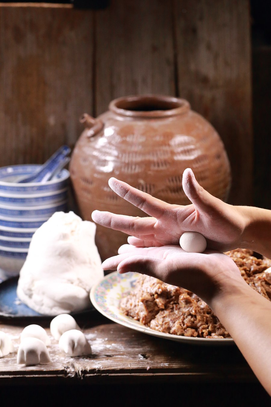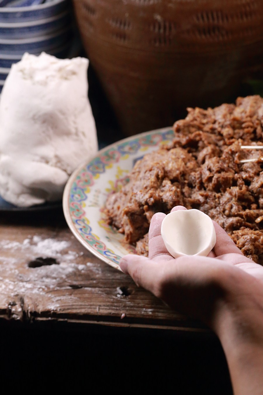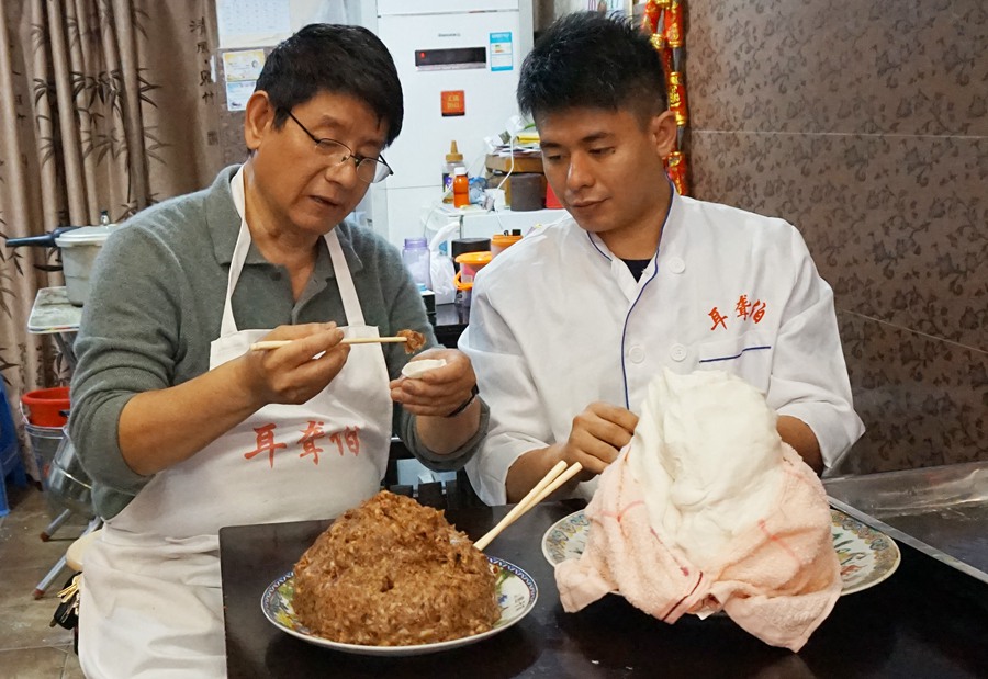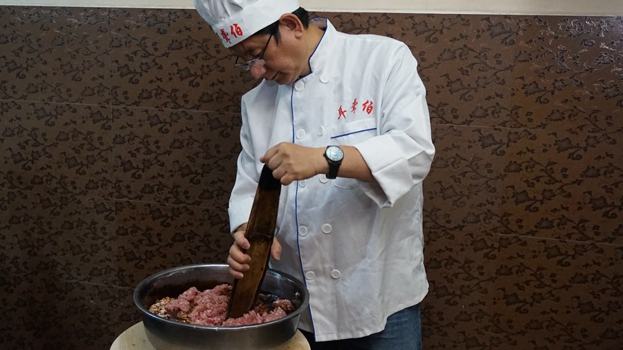 林英德在制作肉馅。林威摄