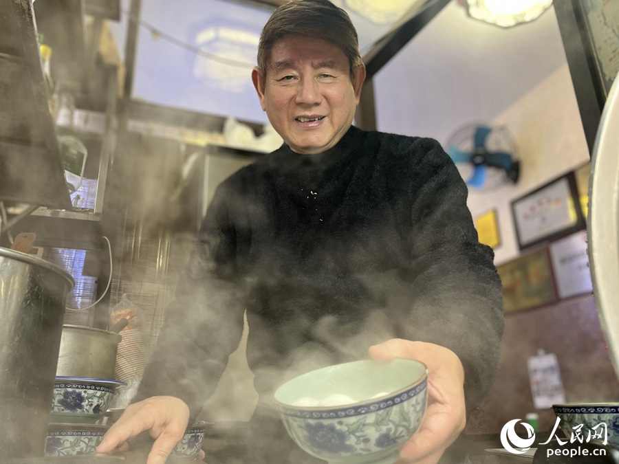 耳聋伯元宵丸制作技艺非遗技艺传承人林英德正在煮元宵。人民网 钱嘉禾摄