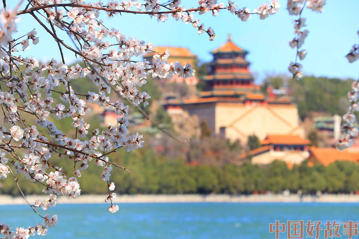 图为颐和园西堤桃花盛开,与远处佛香阁交相辉映。宋家儒摄