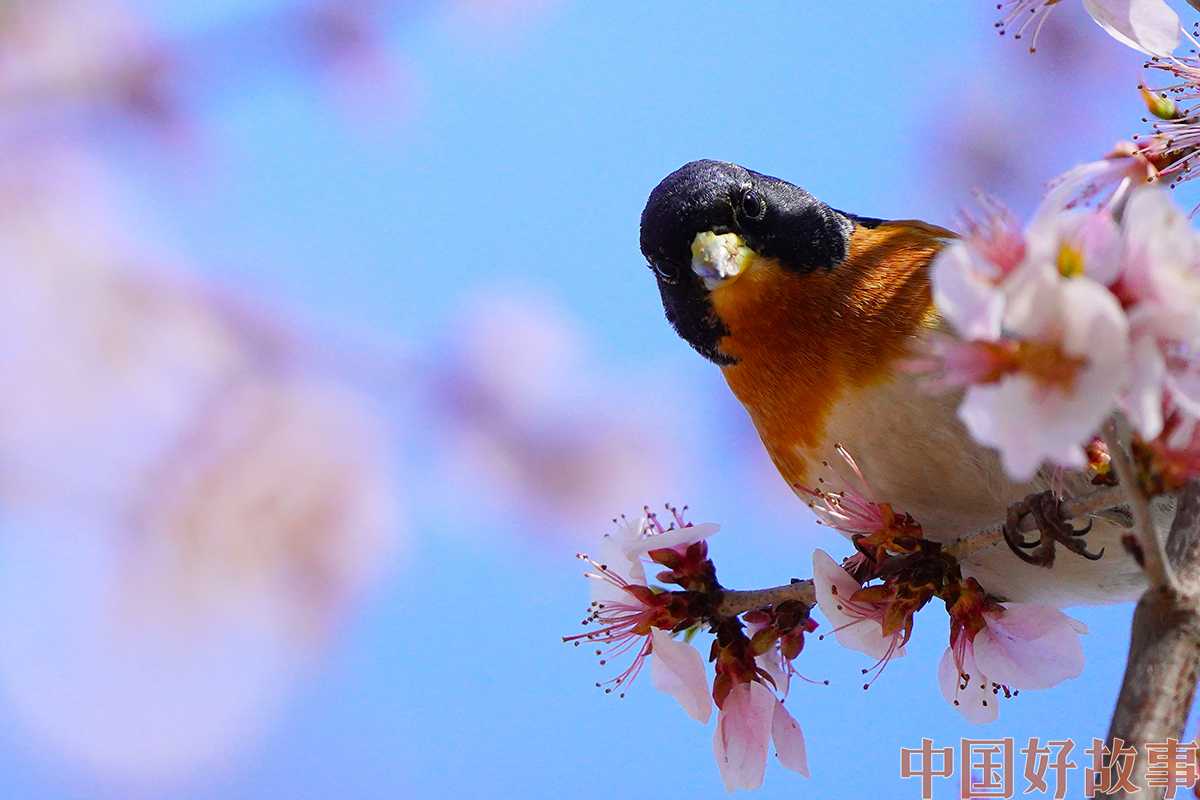 图为一只燕雀在桃花树上。宋家儒摄