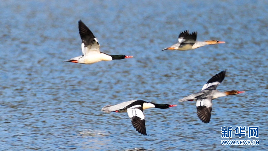 图为在宜昌当阳青龙湖国家湿地公园拍摄的中华秋沙鸭。新华网发 金荣军 摄