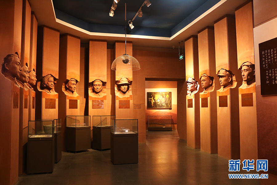 黄麻起义和鄂豫皖苏区烈士纪念馆内,《戴克敏和他的一家“满门忠烈”》雕塑作品。新华网发 刘生辉 摄