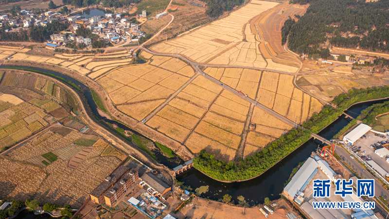 航拍镜头下的麦田。新华网 赵普凡 摄