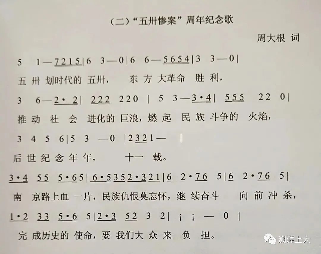 由周大根作词的“五卅惨案”周年纪念歌。