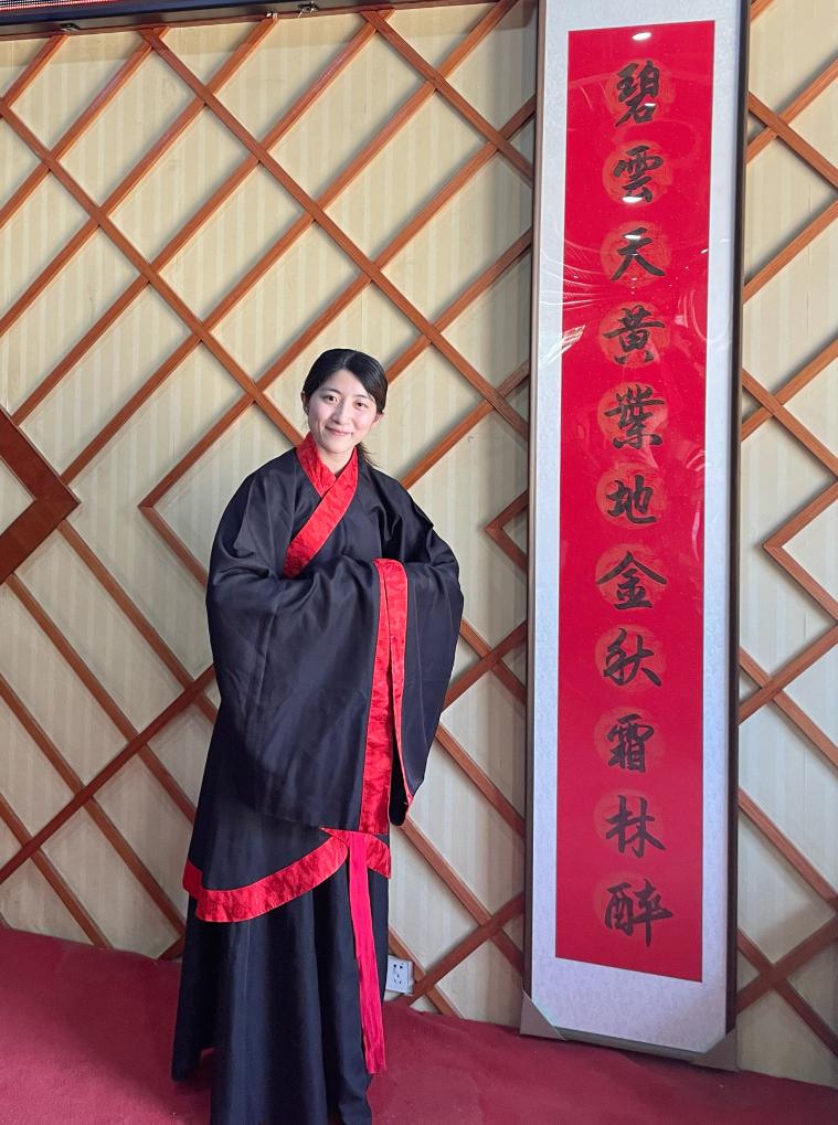 署理高级督察倪百禧试穿汉服(2023年7月摄,资料照片)。新华社发