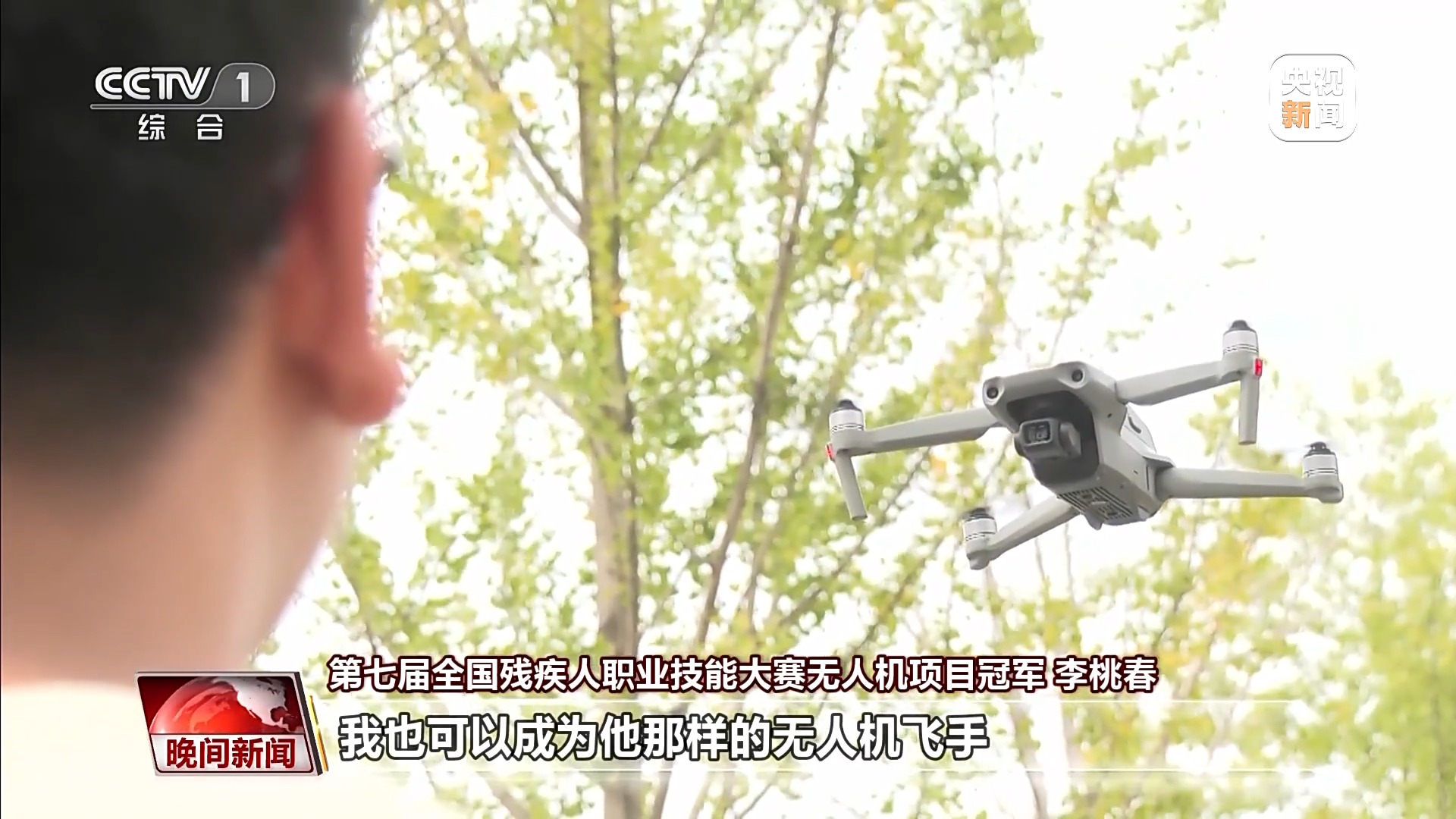 第七届全国残疾人职业技能大赛无人机项目冠军 李桃春:我在高二的时候碰到了别人飞无人机,我看见无人机在天上飞,当时内心就想,我也可以成为他那样的无人机飞手。