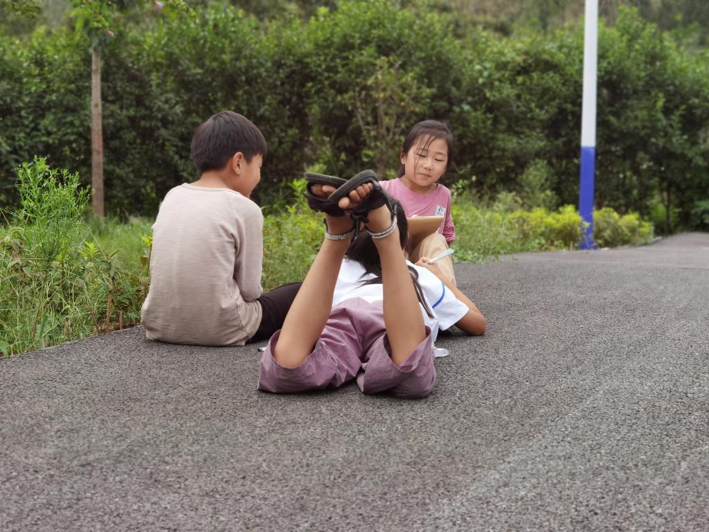 大南坡小学的孩子们在户外写诗。孙莉莉 摄