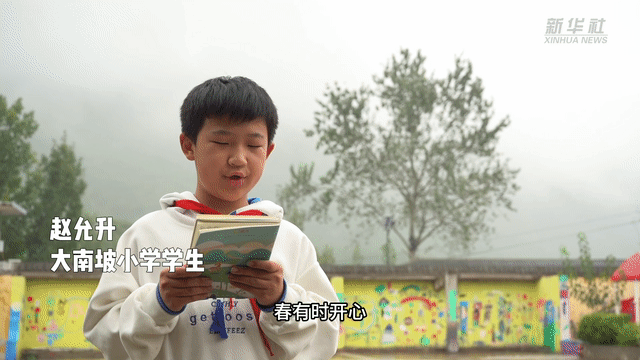 “小鸟站在树顶,眺望着远方,他注意到,我们在为大自然写诗,不由自主地,来到了身边,也让我们为他,写一首美妙的诗……”课间,孩子们在为即将到来的大南坡小学诗歌音乐节排练歌曲,这首用他们的诗作填词的歌,与稚嫩且洪亮的声音一起,在山林间回荡。