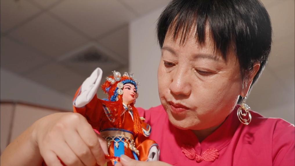 茶山绸衣灯公的制作,结合了泥塑、绘画、剪纸等多种工艺技法。李翠薇拜师学习制作茶山绸衣灯公,尽管异常艰难,但她凭借着顽强的毅力还是坚持了下来。
