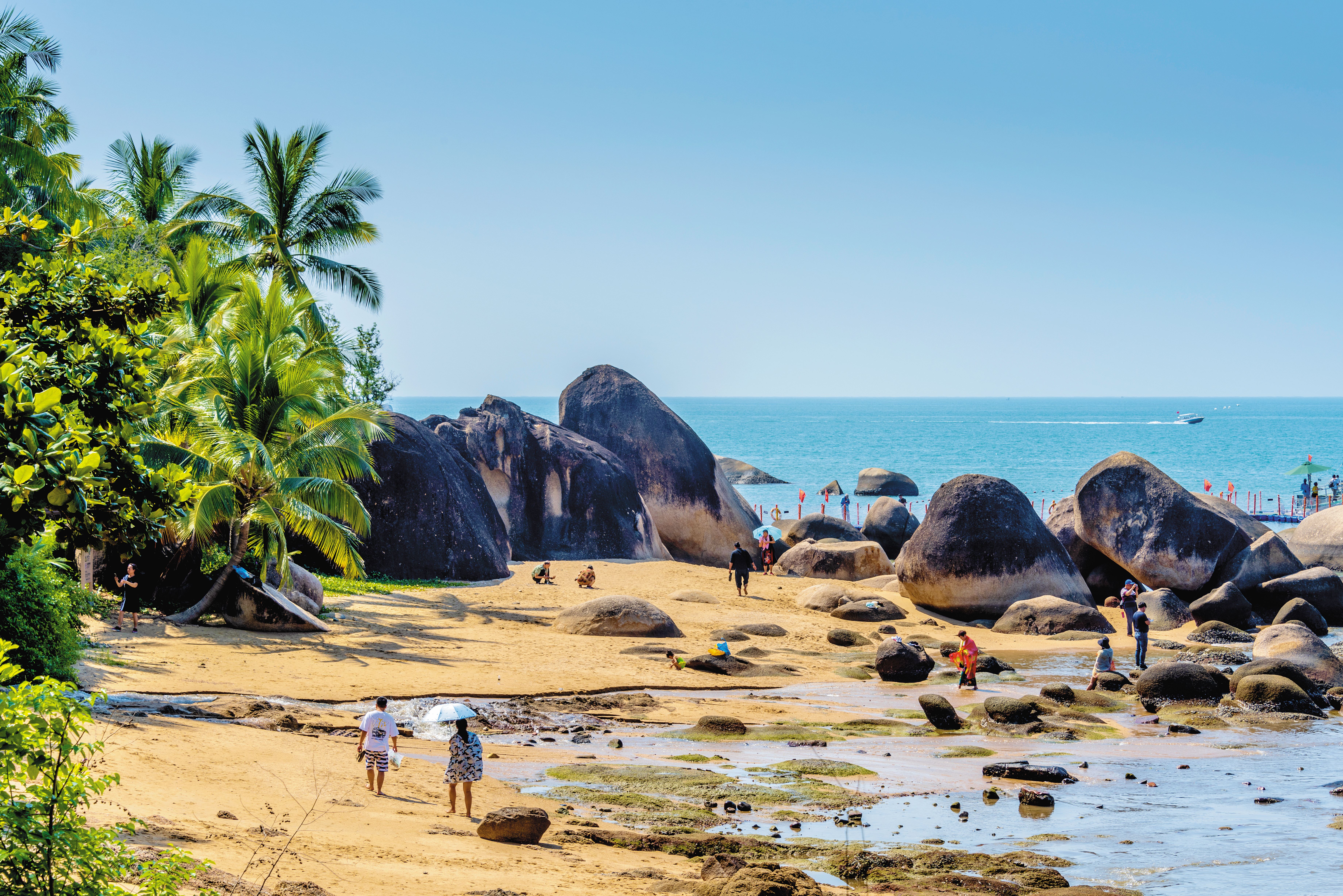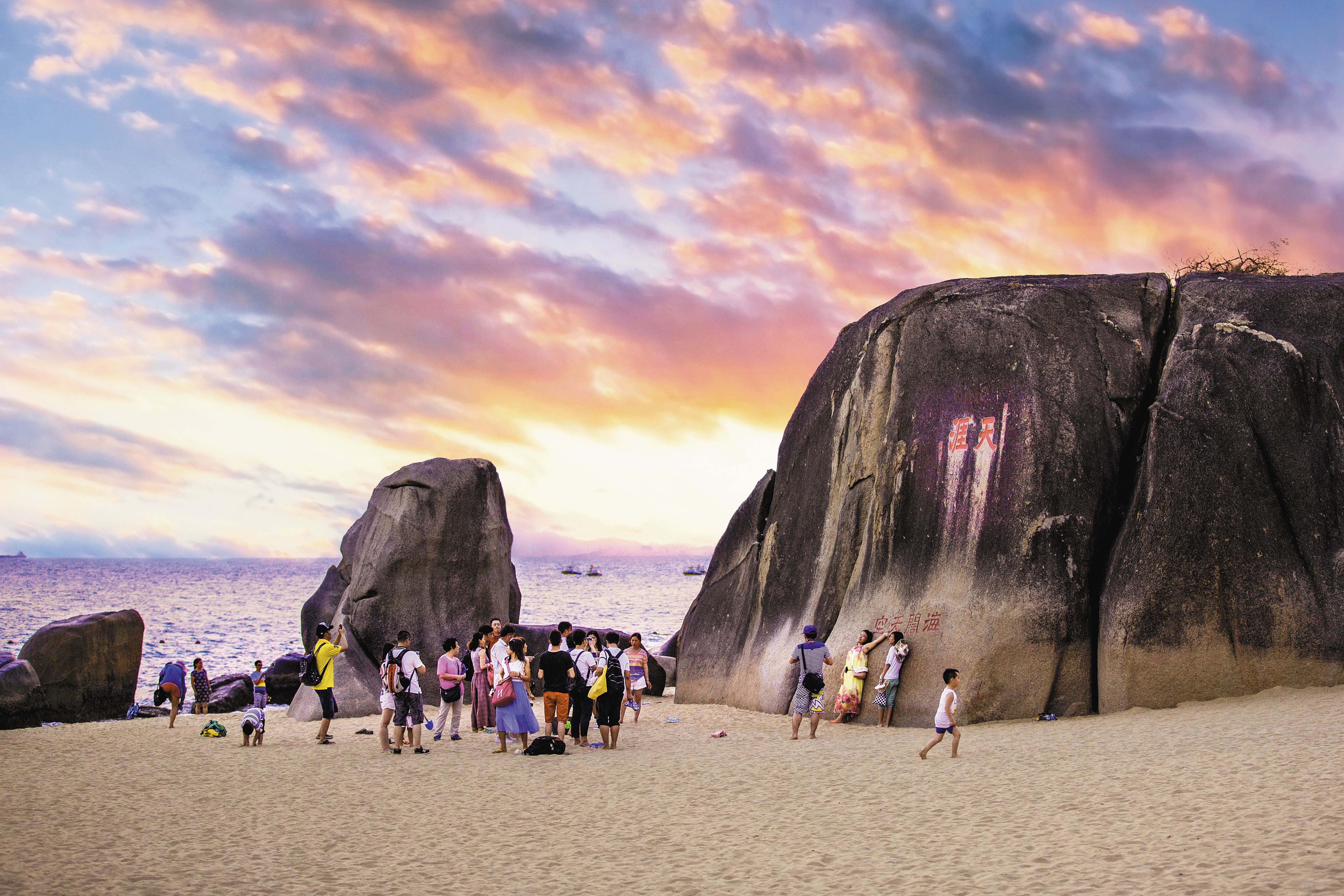 天涯海角游览区位于三亚市政府以西约20千米处,是海南的标志性景区。因景区两块巨石分别刻有“天涯”“海角”二字及郭沫若题写的“天涯海角游览区”而得名。1984年,天涯海角摩崖石刻群被辟为风景名胜区,作为海南岛著名标志景区正式接待中外宾客。2001年,天涯海角风景区成为国家首批4A级景区。