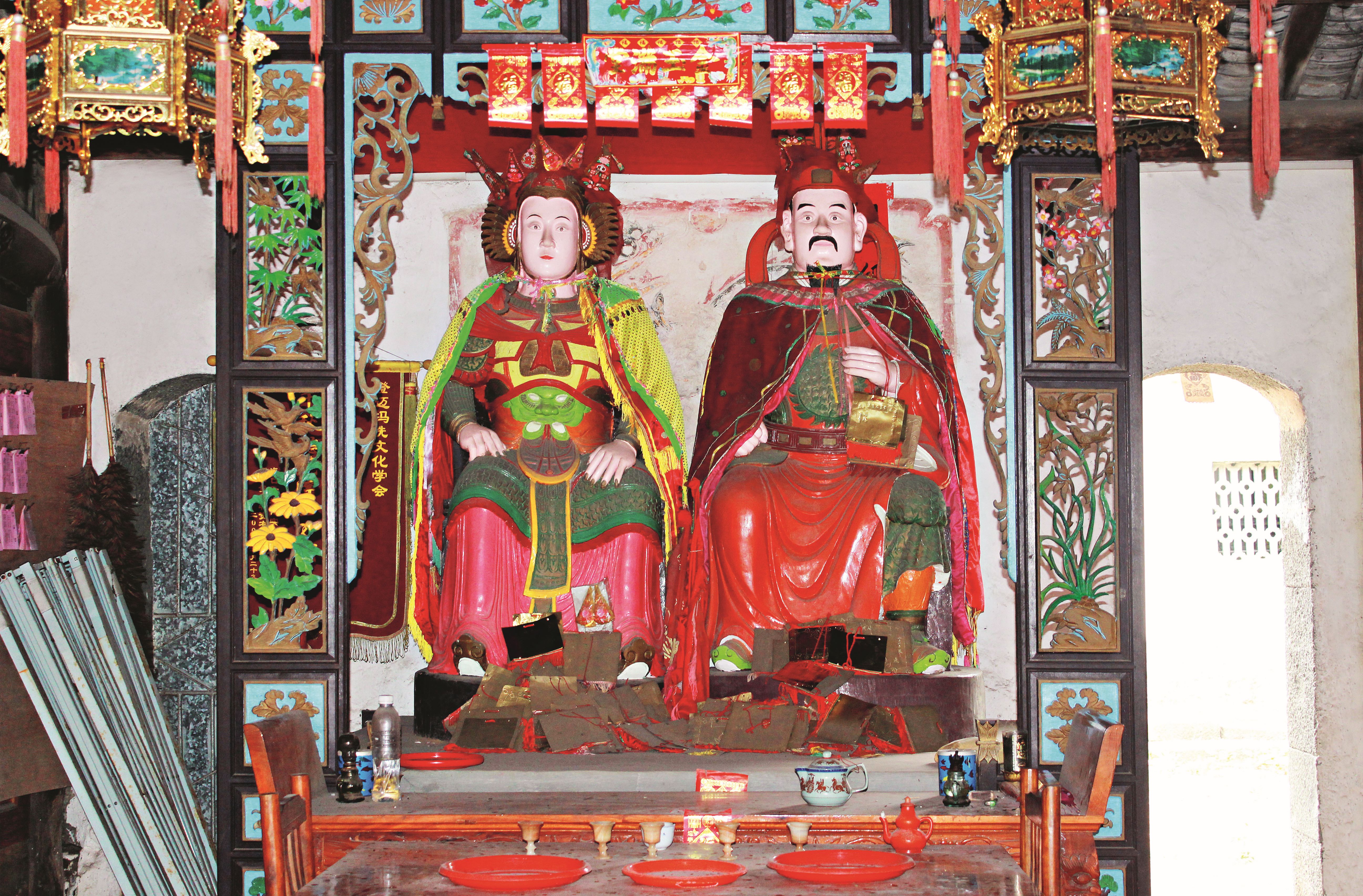 澄迈冼夫人庙供奉的冼夫人和冯宝雕塑