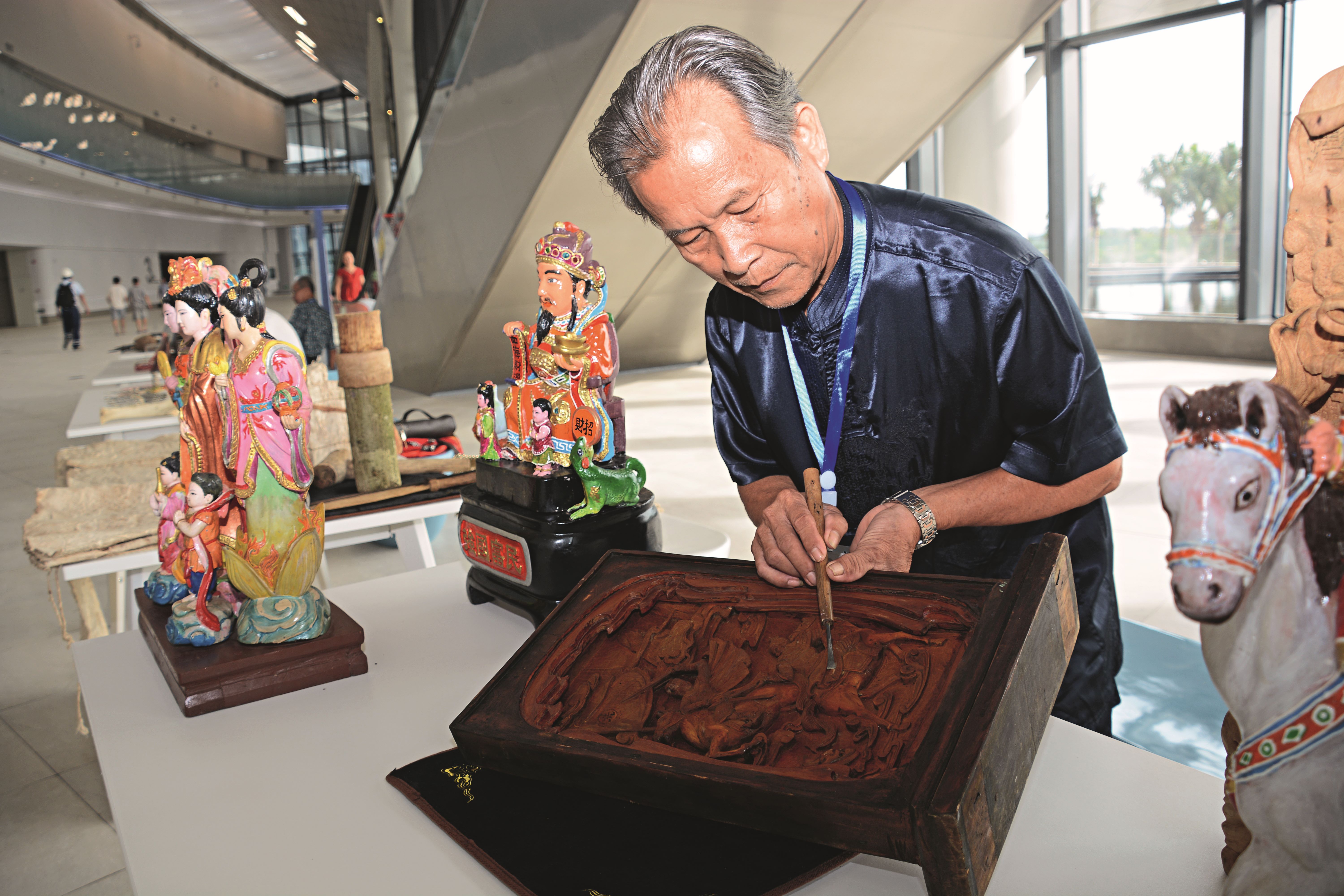 花瑰艺术是海南民间对木雕神像、偶像、人物像等雕画技艺的俗称。在海南,以澄迈县的花瑰艺术最具代表性。澄迈县白石岭山洞出土的彩绘琢木俑为海南早期的花瑰艺术作品。