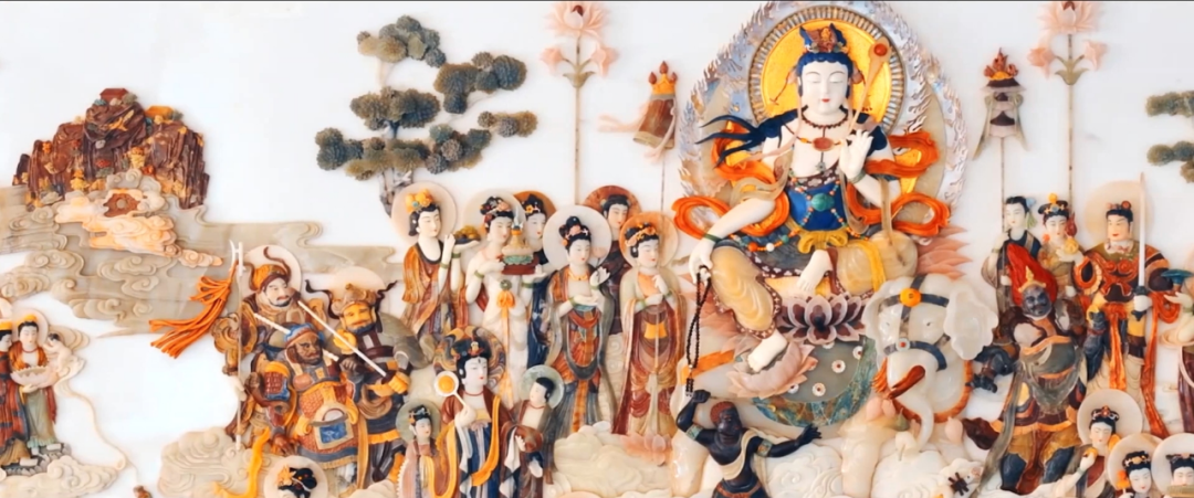 彩石镶嵌可分为浮雕、高浮雕、平磨平嵌、黑地平磨镶嵌、满地嵌等。形式可分匾额、对联、挂屏、屏风和家具装饰几类。其作品色彩华贵,光亮照人。哈利勒此行还拜访了彩石镶嵌国家级非遗代表性传承人——缪成金老师,更深入地了解和体验了彩石镶嵌的制作技艺。