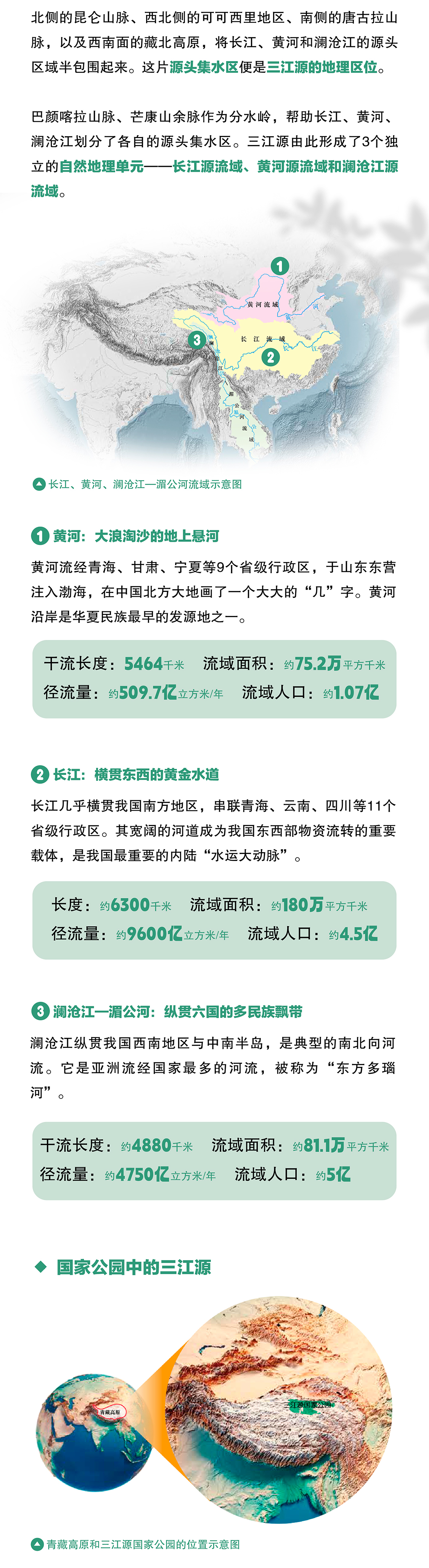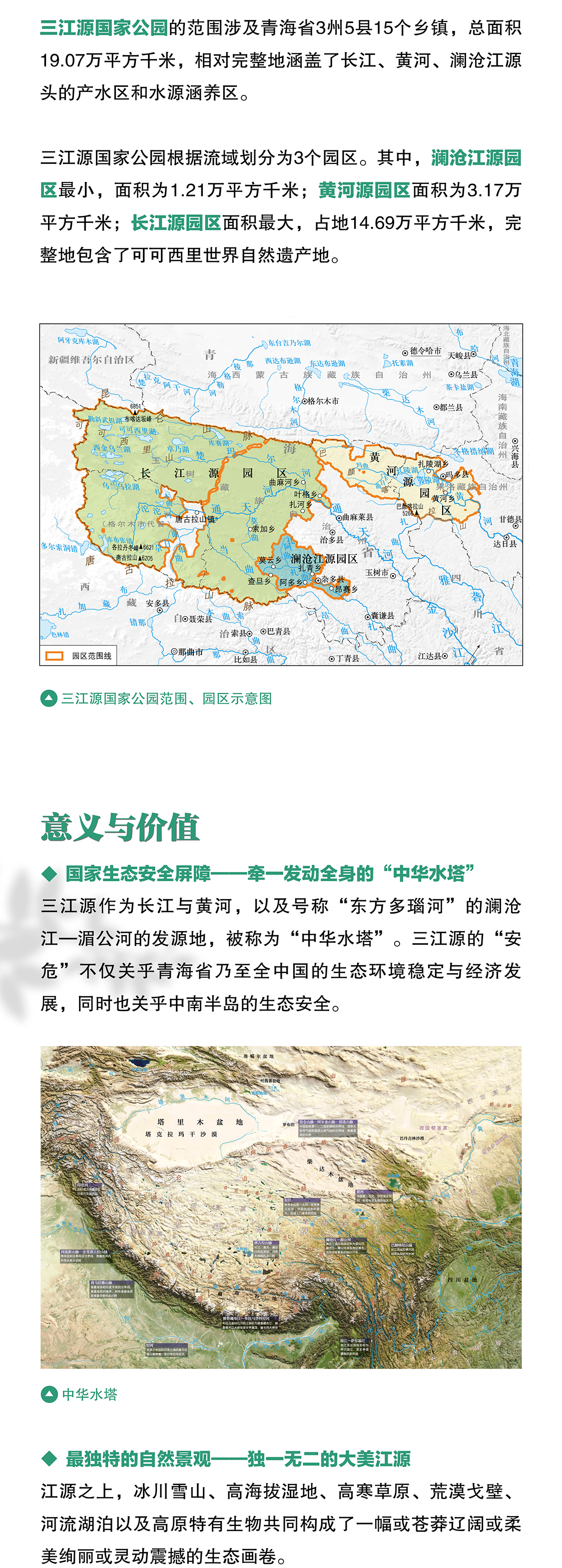 三江源国家公园地处青海省西南部,总面积19.07万平方千米,是迄今为止我国面积最大的国家公园,相对完整地涵盖了长江、黄河、澜沧江源头的产水区和水源涵养区。