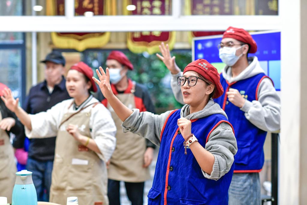 上午11时,用餐时间将至。张永馨带领就餐的老人们唱起了歌,歌声嘹亮,这是贵阳诚善助老公益互助餐厅的日常。11时30分,银发志愿者们准时忙碌起来。她们有的哼着小调将菜肴装盘,有的笑眼弯弯地分发餐食,后厨飘出的香气与餐厅内此起彼伏的歌声汇织成曲。