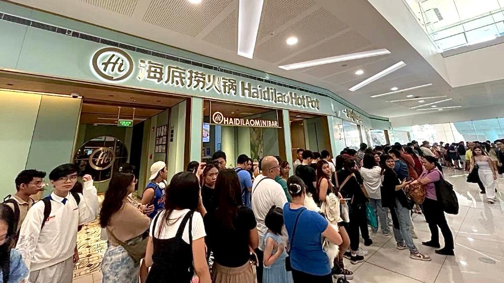 食客在海底捞菲律宾MOA店外排队等待就餐(2024年1月摄)。(受访者供图)
