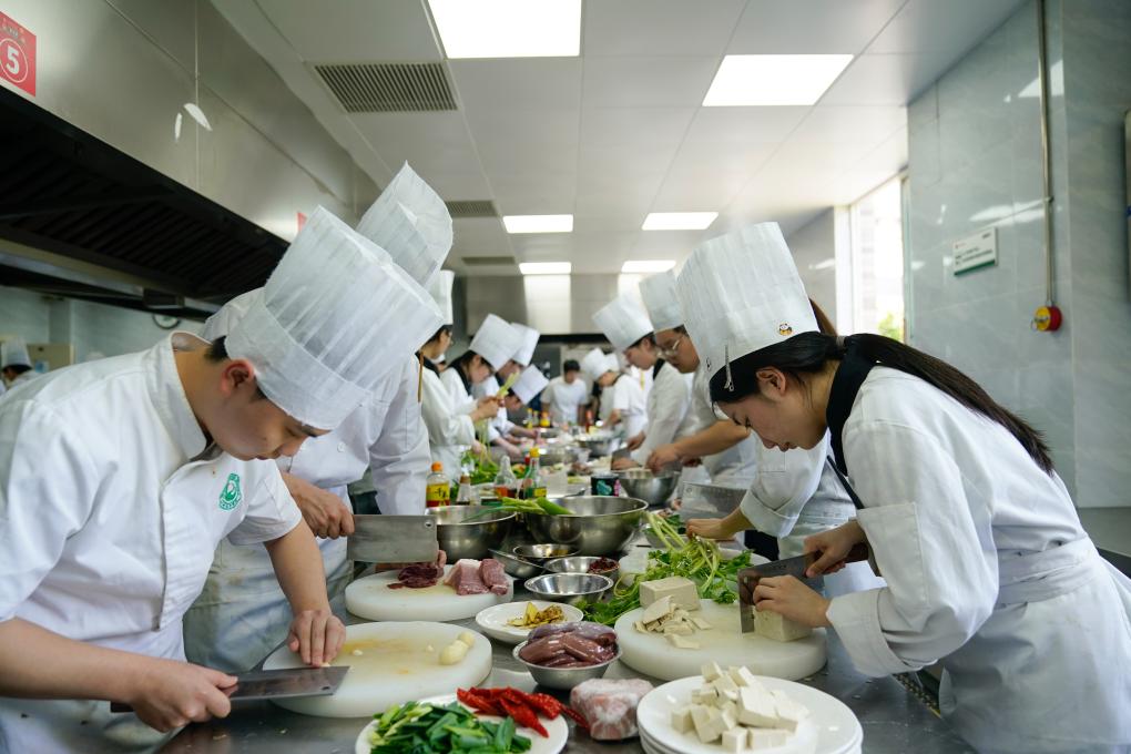 4月24日,在四川旅游学院,烹饪与营养教育专业学生在川菜制作工艺课上实操。新华社记者 胥冰洁 摄
