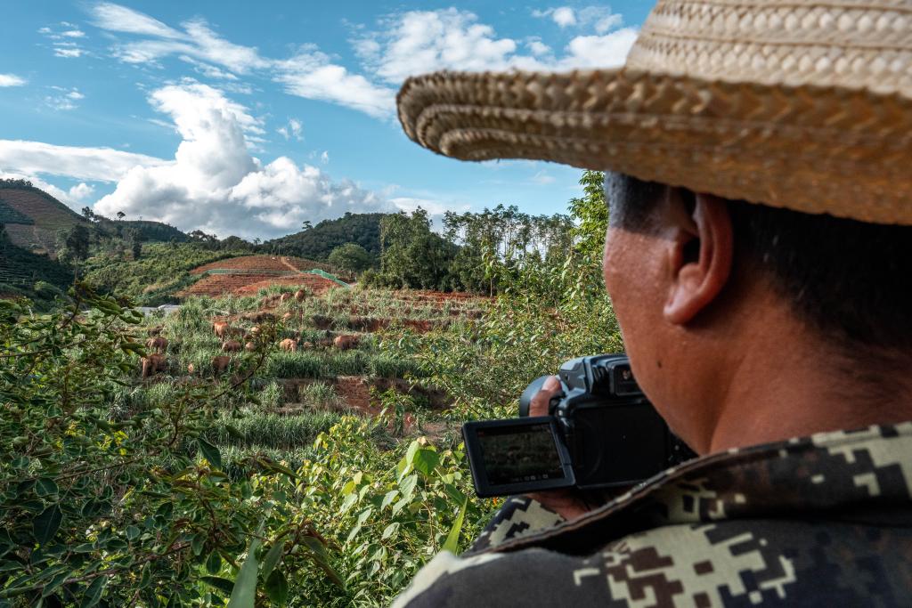 以前,彭金福的工作全靠双腿追,望远镜视线常被密林挡住。如今,无人机能让他同时检测多个象群。