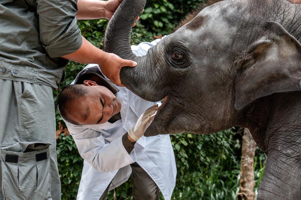 送到中心时,它只有90厘米高、100公斤重。初为“象爸爸”的莫诗宇和同事24小时轮流守护——喂羊奶、敷药、康复训练。快一年过去,“崽崽”的伤口已痊愈,从蹒跚学步到活蹦乱跳。