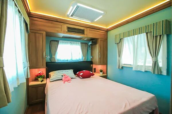车内空间的设计充分考虑了居住的舒适性与实用性,食品级水系统与环保板材的使用,守护着家人的健康。智能互联系统的加入,让灯光、温度、影音设备的操控变得简单便捷,躺在床上就能语音控制全屋设备。从细节处的人性化设计,到整体空间的合理规划,每一处都体现着“以用户为中心”的理念,让房车成为真正意义上的“移动家园”。