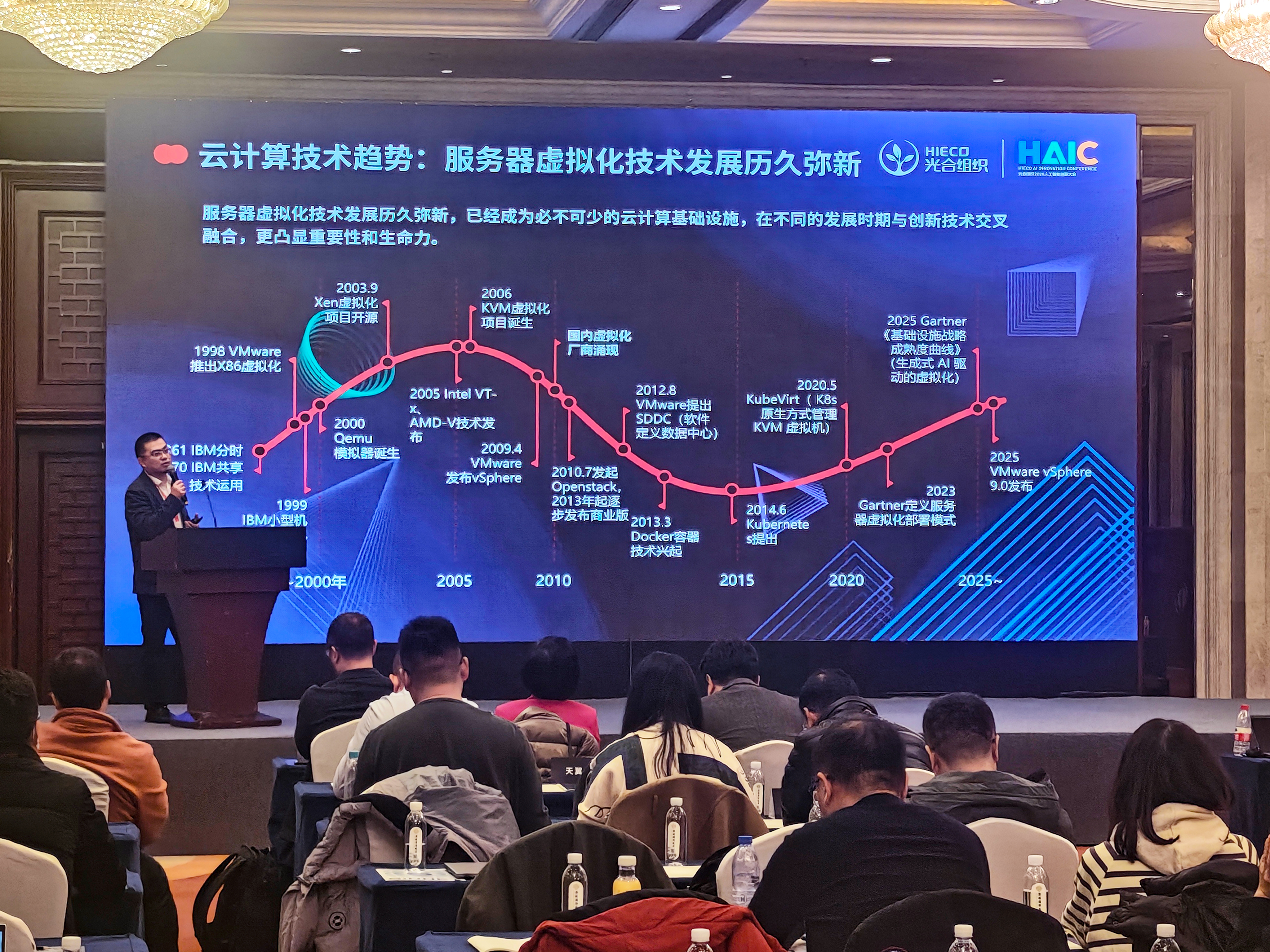 近日,光合组织人工智能创新技术大会(HAIC 2025)在江苏昆山拉开帷幕。大会以“智算无界,光合共生”为主题,汇聚全产业链超2500家企业代表、专家学者及行业领袖,通过200余场高密度分享与5000余平方米实景展区,全景呈现中国AI计算开放架构的创新实践与生态繁荣。云宏携高算力开放云解决方案亮相展区,并以主题演讲及案例入选等多重形式,展现其在虚拟化领域的创新实力与生态价值。