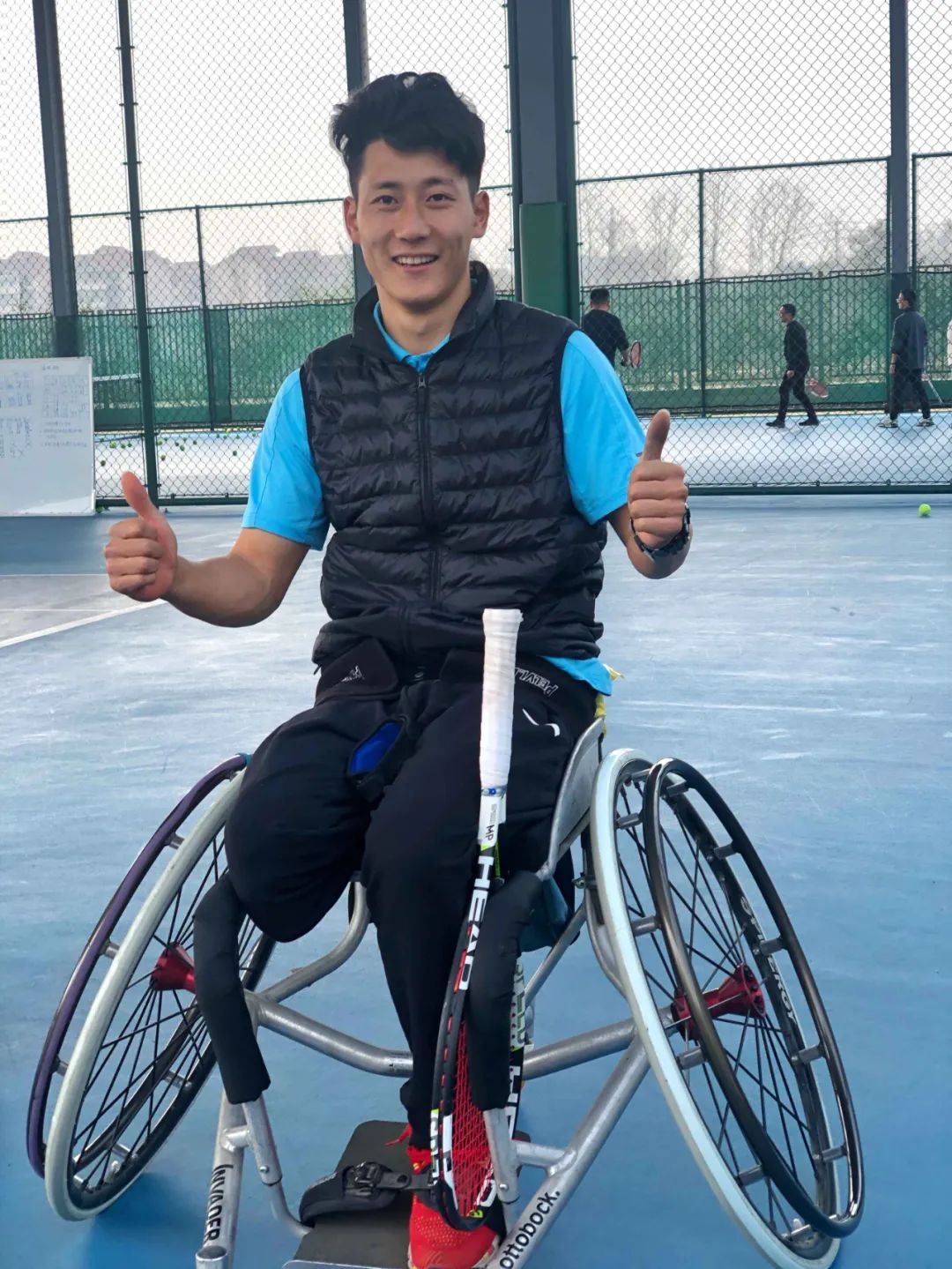 在轮椅上用网球拍