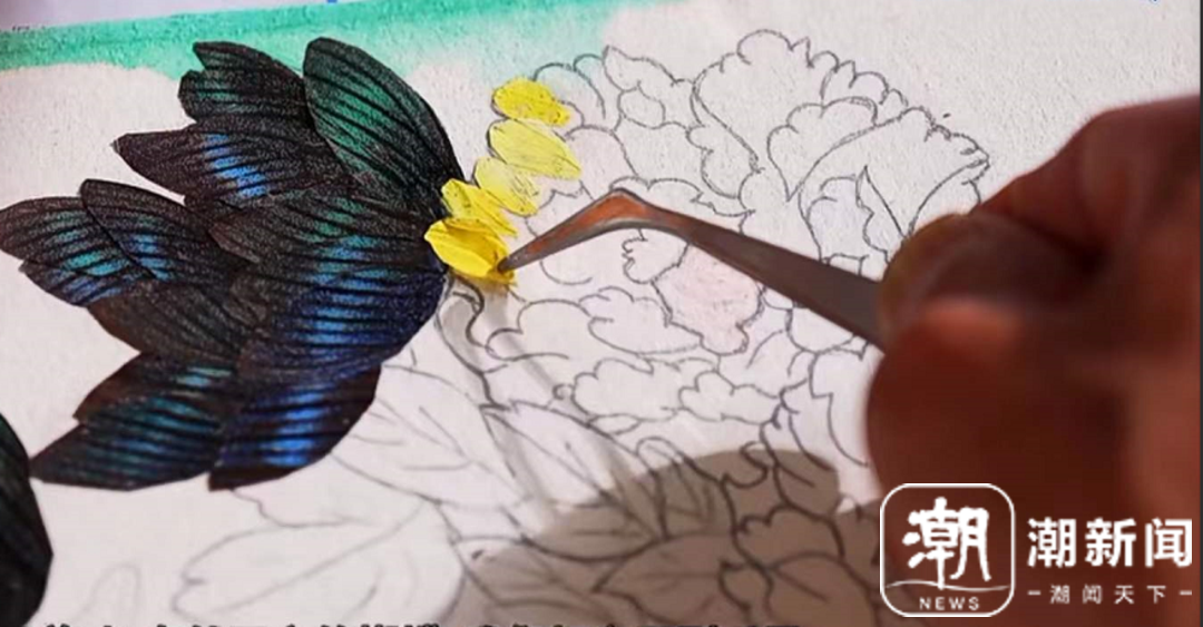 什么是蝶翅画?鲁迅先生曾赞它为“缺门、独门、冷门的文化瑰宝”。它以天然蝴蝶翅膀为材料,经艺人手工剪切并巧妙拼贴而成,是我国的独有画种,也是非物质文化遗产。