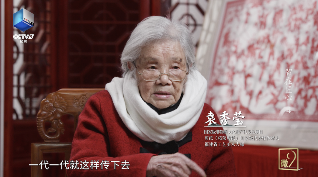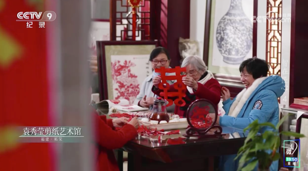 正是靠着这样的精神,袁奶奶以剪刀代笔,把自己的思想、希望注入到剪纸作品中,创作出具有生命力的艺术品。许许多多的年轻人,通过袁奶奶了解到这项传统技艺,成了柘荣剪纸爱好者,为剪纸的传承注入了新的力量。
