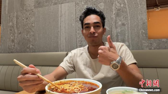 2023年10月,米都在兰州品尝兰州牛肉面。王牧雨 摄