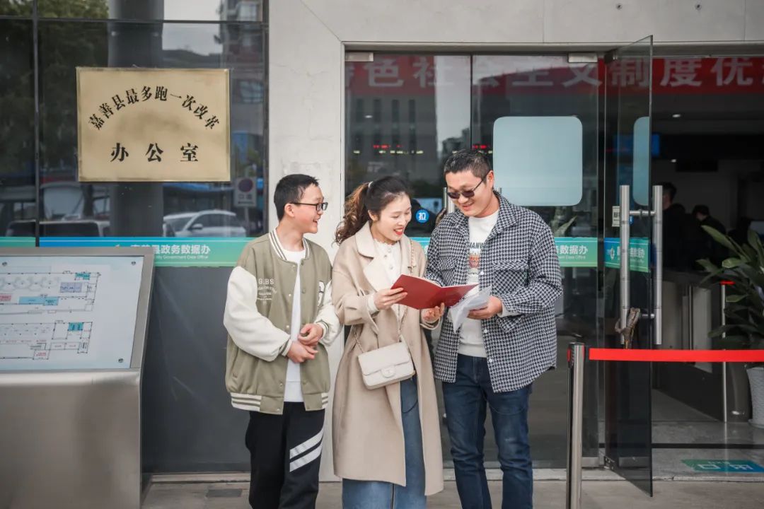 2023年4月7日,从不动产登记大厅拿到房产证的杜丽君和丈夫、儿子紧紧拥抱在一起。她的新家位于浙江省嘉兴市嘉善县,与上海松江区一路之隔。现在,一家人每天开车往返上海和浙江,工作和生活。