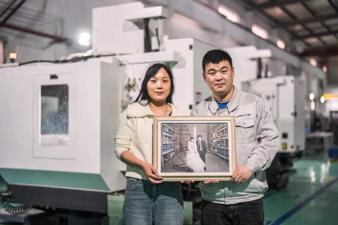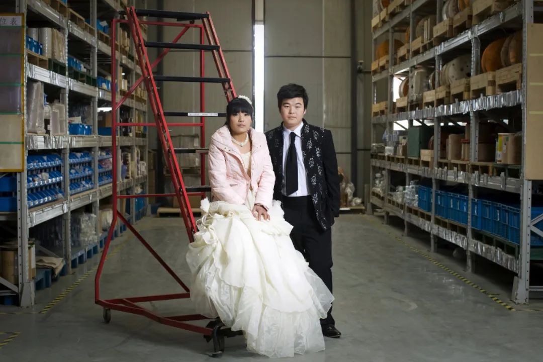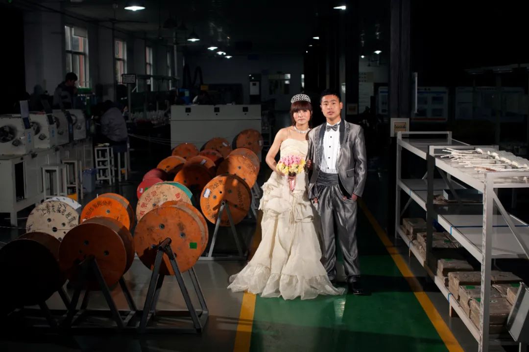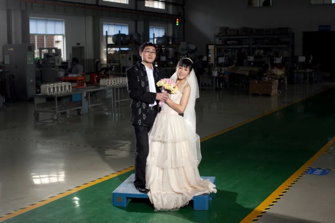 2012年,李洪斌和杜丽君在工厂拍婚纱照。