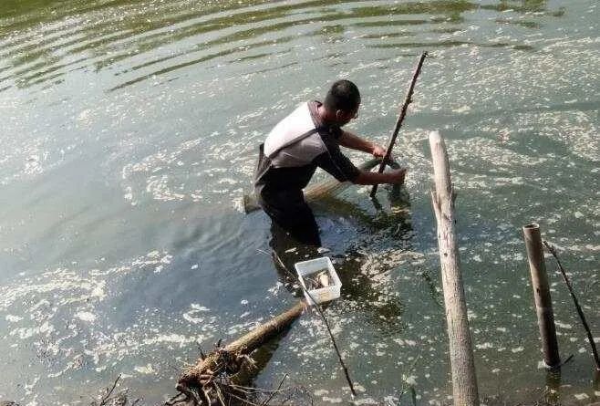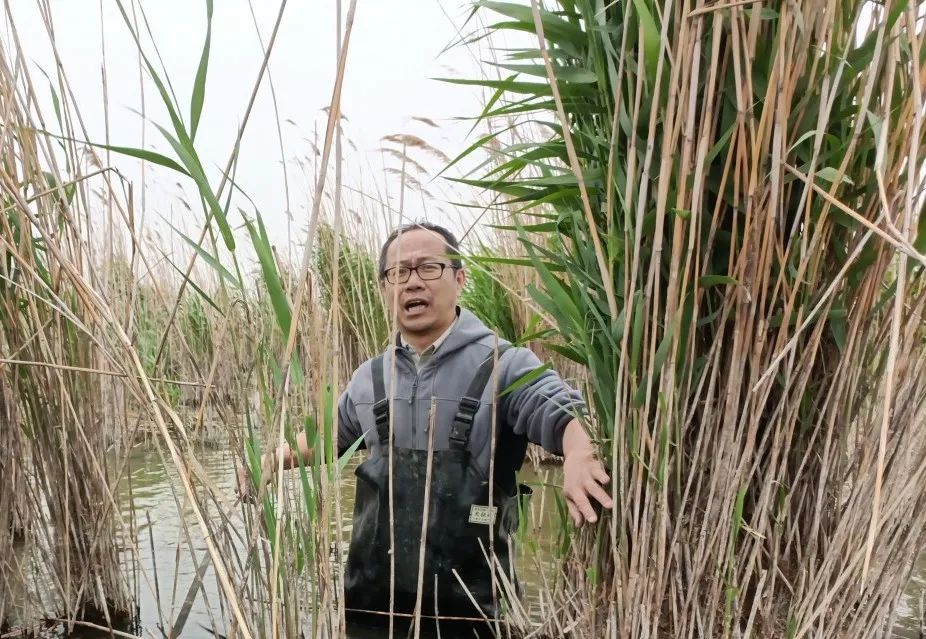 武大勇在衡水湖进行芦苇生长科学管理项目。图片来源:河北省文明办
