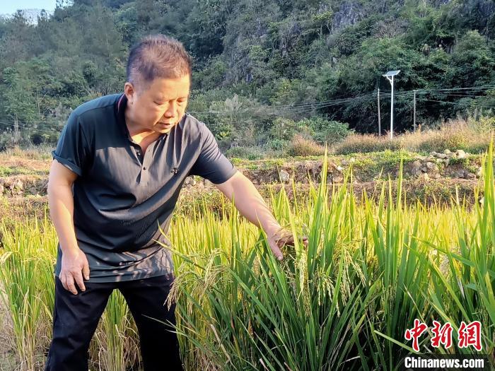图为黄闯功在查看稻米成熟情况。德保县委宣传部供图