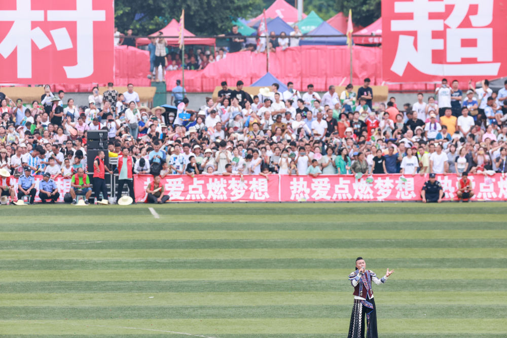 ↑ 2023年7月29日,歌手在“村超”总决赛的中场休息时表演。