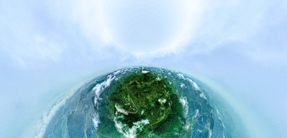 ↑ 2023年6月22日拍摄的“中国天眼”全景(维护保养期间拍摄,无人机全景拼接照片)。