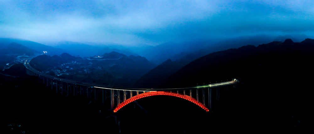 从高空向下俯瞰,高桥宛如纽带,跨越深邃的峡谷、沟壑,将纵横的群山紧密相连,万桥飞架南北,天堑变通途。